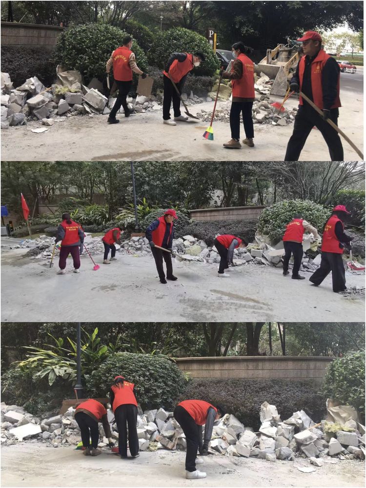 区建设局志愿者下沉建新镇,对桃源境社区内堆放的渣土、砖块、碎石等建筑垃圾进行“地毯式”清理。志愿者们齐心协力、分工合作,挑拣生活垃圾,使用铁锹、铲子等工具搬运建筑垃圾到推车上,将小区内的建筑垃圾清除干净。经过集中清理,社区环境面貌得到了全面改观。