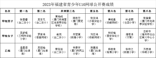 福建省青少年U10网球公开赛是网球初学者正式走进网球世界的金钥匙,为福建青少年提供了良好学习交流的机会。本次比赛为2024年福建青少年网球赛事挥动了第一拍,相信2024年福建网球赛事将会更加精彩。