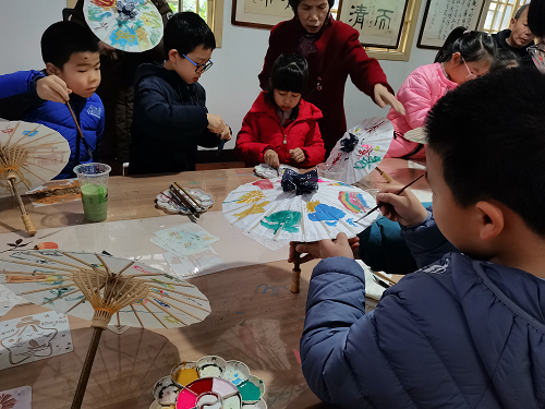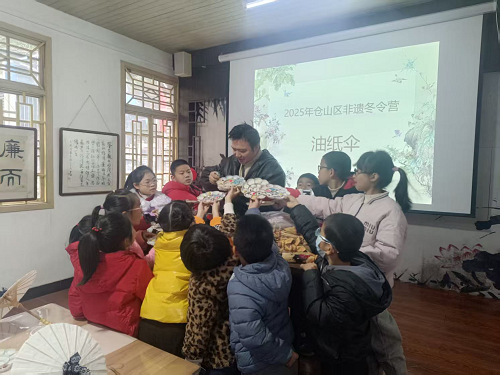 2月11日上午,2025年非遗公益冬令营油纸伞制作体验活动在仓山区文化馆独立厅举办。