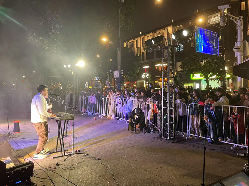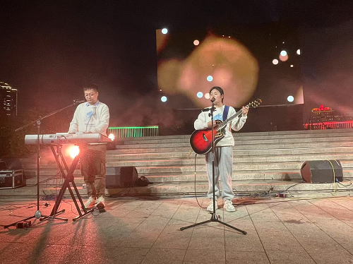 活动现场,当《小幸运》“原来你是我最想留住的幸运……”歌声响起时,观众席自发亮起手机闪光灯,全场宛若流动的星海,前排一对白发夫妇轻声哼唱,不少情侣手牵着手,在歌声里深情对视;《约定》《慢慢喜欢你》等十余首经典情歌,用音乐串联起爱情的点滴瞬间;舞台特效模拟时空隧道,光束交织中,六对情侣和夫妻作为烟台山“有情人”嘉宾悄然登台静候。“真情告白”互动环节,他们分享了自己的恋爱故事,有的讲述了从相识到相守的点点滴滴,有的回忆了在烟台山定情的浪漫瞬间。