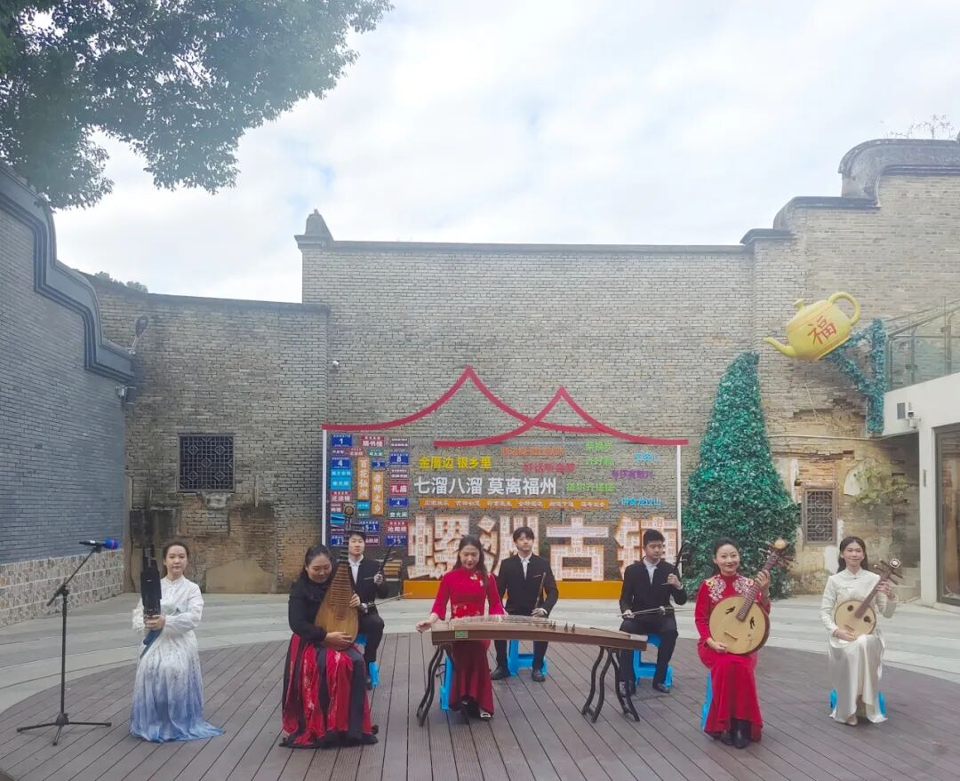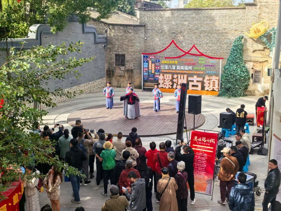 12月28日上午,“英雄福州城”文艺演出继续在螺洲古镇游客服务中心上演。