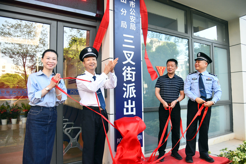 10月18日上午,三叉街派出所新址揭牌仪式隆重举行。市局党委委员、副区长、分局局长郑金保,三叉街街道书记陈涛、东升街道书记刘静出席仪式并共同为新所揭牌。分局党委委员、政治处主任李林,分局相关科室负责同志及街道有关干部,三叉街派出所全体民辅警参加仪式。
