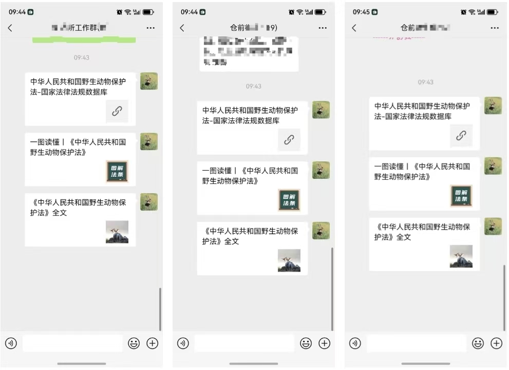 活动中,蒲公英普法志愿者利用辖区网格群等转发法治福州“一图读懂《中华人民共和国野生动物保护法》”及法治仓山关于“《中华人民共和国野生动物保护法》全文”等内容,就该法的立法意义、适用范围、保护原则等方面作了宣讲,强调保护野生动物的重要意义,倡导全民积极参与到保护野生动物行列,从自己和身边人做起,从自家餐桌做起,不捕食野生动物,不购买、不使用野生动物制品,争当学法、知法、守法公民,做生态文明的践行者。同时,向群众大力宣传发现违法线索时及时拨打投诉举报电话或者直接向公安机关举报,努力营造野生动物资源保护全民参与、共同监督的良好氛围,从源头上杜绝违法行为的发生。