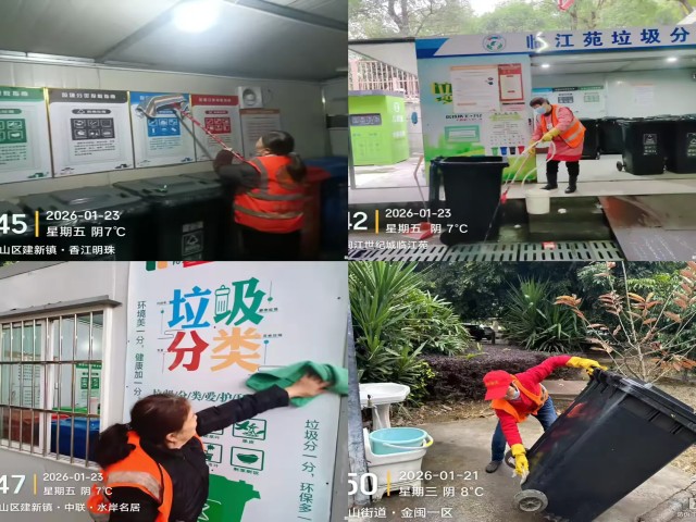 截至1月22日,累计清洗主次干道1938条次,人行道、地下通道过街天桥、高架桥361条次,公厕2955座次,转运站151座次,垃圾分类屋(亭)7545座次,垃圾桶38120个次,防撞墙、护栏、声屏障、隧道立面40070平方米,清理绿化带1366000平方米,清理卫生死角1525处次,清洗果皮箱8464个次,清洗垃圾运输车1866部次,更换果皮箱12个次,更换公厕设施设备82处次,分类屋(亭)设施设备124处次,清掏化粪池23座次,更换垃圾运输车老旧标识和垫布116处次,更新更换分类宣传海报及老旧标识221处次,各环卫场所张贴宣传横幅211处。