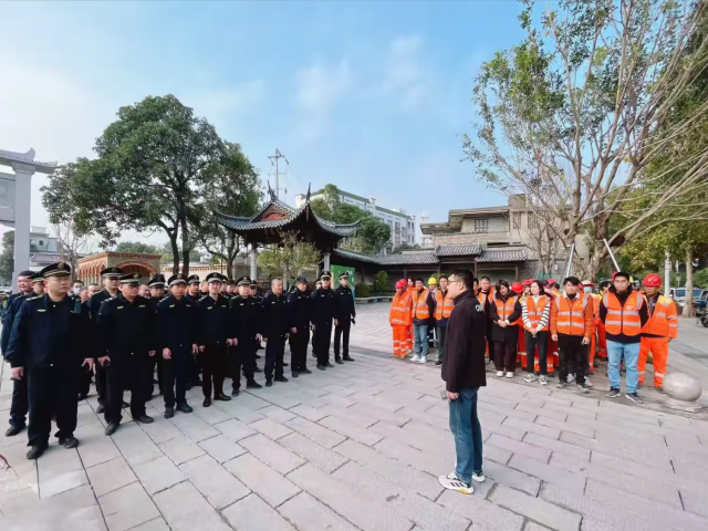 城管与环卫双线发力,织密保障网络。在城管方面,增派执法与保安人员,设置定点值守与机动巡查相结合,实现重点区域与背街小巷全覆盖管控。环卫方面,组织专项保洁队伍,提前开展多轮清理与冲洗作业,并配备应急力量随时响应,确保古镇环境清爽如新。