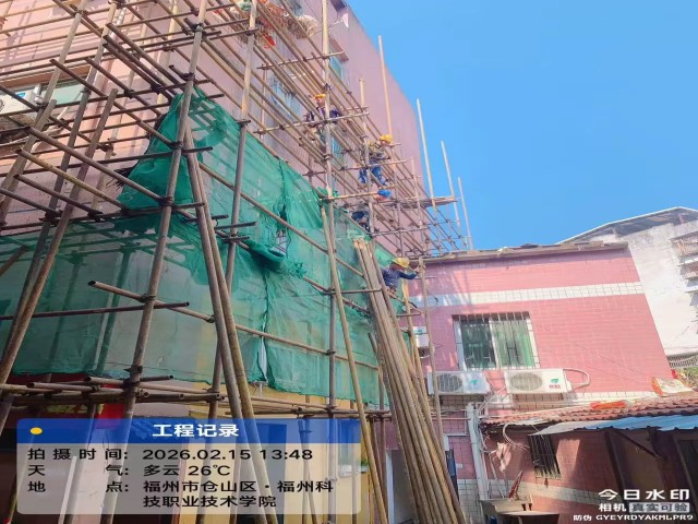 与此同时,仓山区区属国企城投集团也坚守岗位、不停歇,连夜加班加点对科技学院大楼外立面进行改造,目前脚手架搭设已超出立交桥的高度,正全力保障城市运行安全有序。