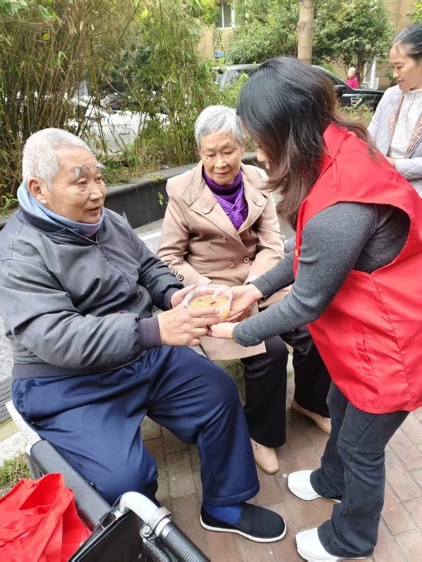 活动中,党员志愿者走进结对社区,开展敬老志愿服务。大家亲手为高龄老人、困难群众送上福粥,用一碗热粥传递党组织温暖,以实际行动践行以人民为中心的发展思想。
