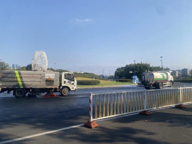 针对展会期间人流密集特点,加大环卫作业力度,增派作业车辆和人员,对重点路段进行巡回保洁,确保城市环境干净整洁。
