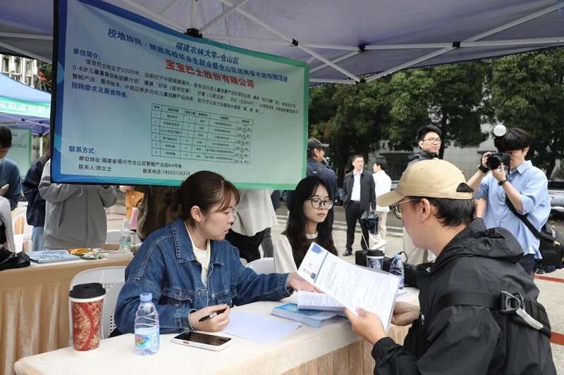 当天,同时举办了仓山区“送岗留才进校园”暨福建农林大学2026届毕业生专场招聘会,紧扣学校学科特色与仓山区产业需求,100家重点企业提供涵盖园林环境、智能科技、生物医药等领域的356个岗位需求,招聘人数达2737人。现场还特设了多个展区,比如,“职业技能培训展区”邀请茉莉花茶技能大师现场展示制茶工艺、开展互动体验,让毕业生在沉浸式体验中感受技能价值、明晰发展方向。又如,“就业指导专区”依托AI就业测试服务,为学生提供精准能力画像与岗位需求,显著提升人岗匹配效率与就业成功率。