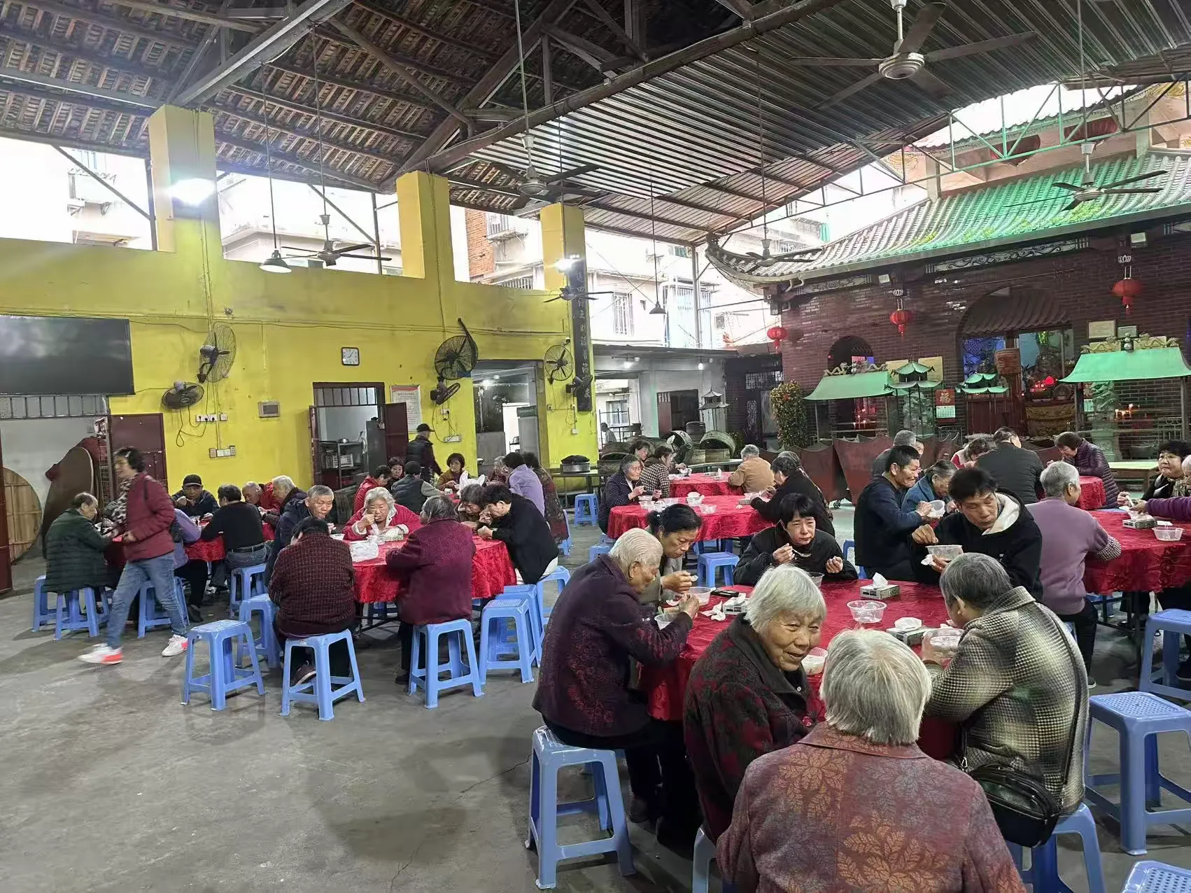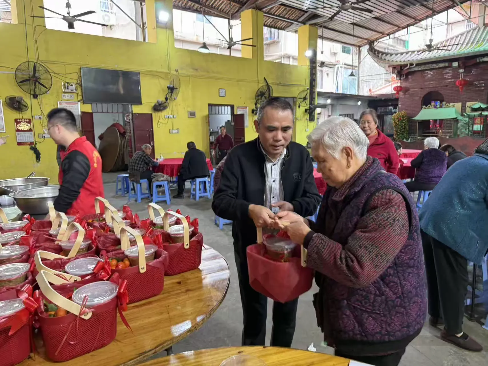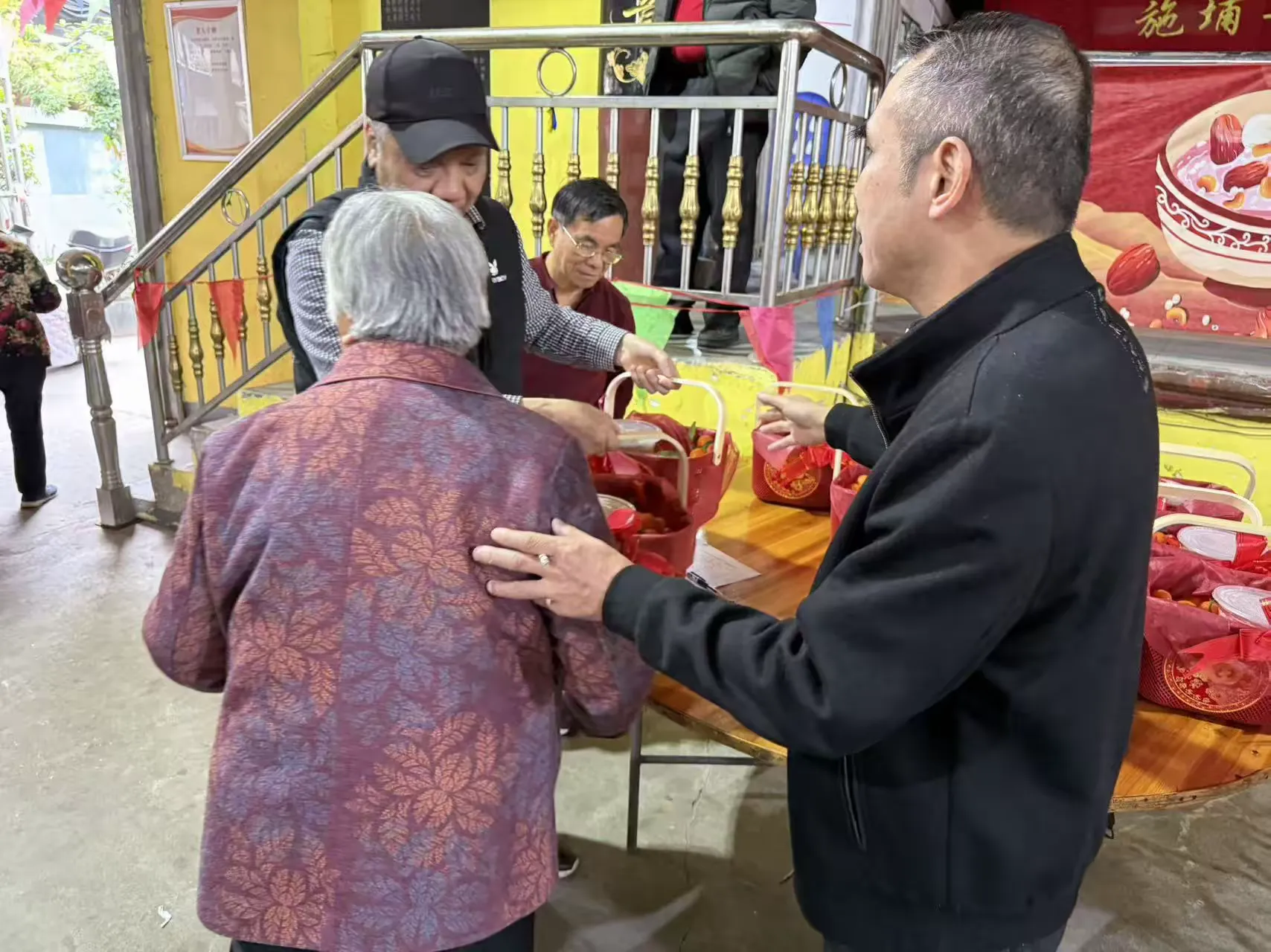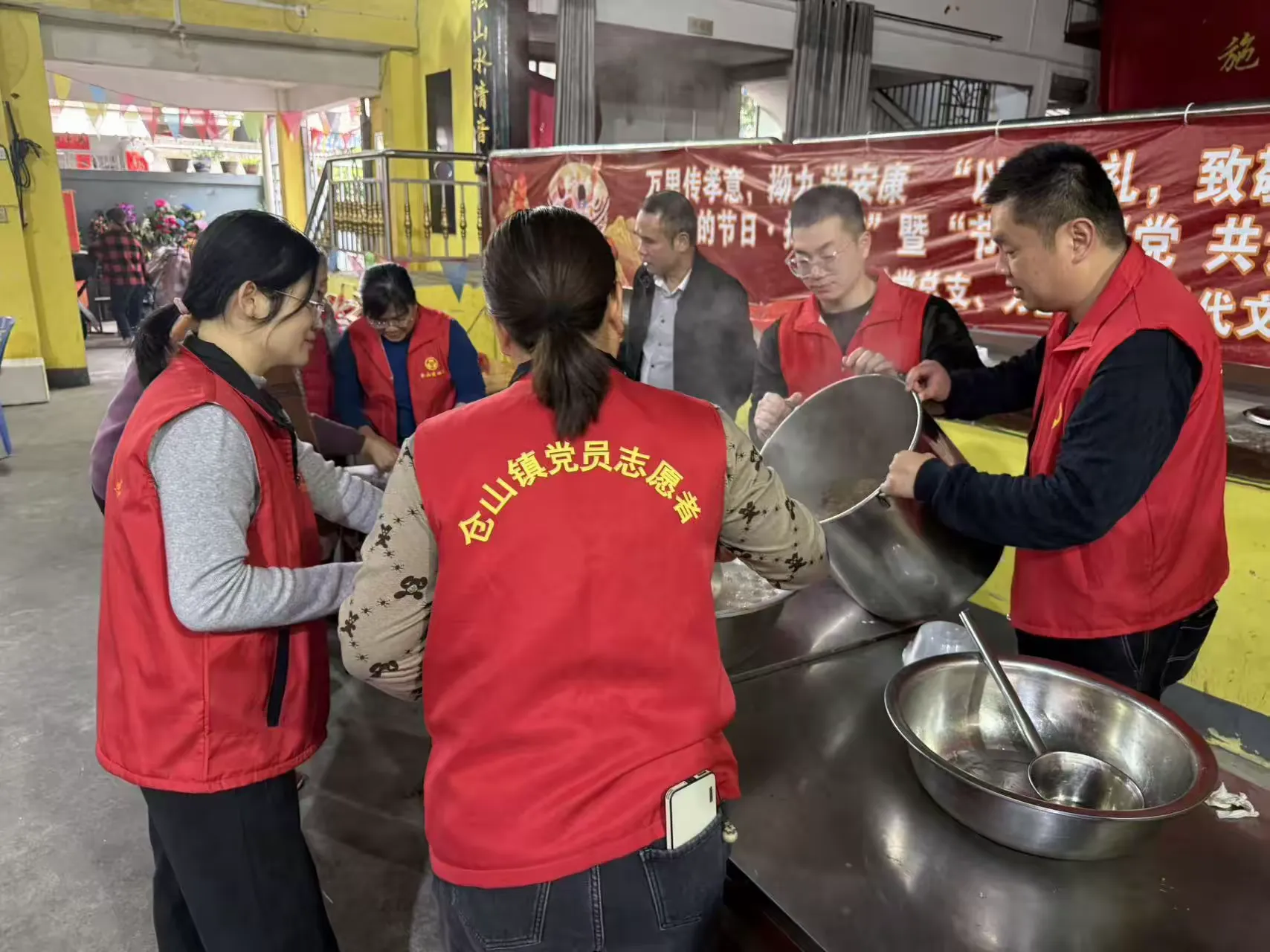 活动当天,万里村幸福院内暖意融融、氛围浓厚,悬挂着“万里传孝意,拗九送安康”“以粥为礼,致敬长辈”“节日感恩党 共话新时代”等宣传横幅,志愿者们身着志愿服装,热情接待前来参与活动的老年朋友们。