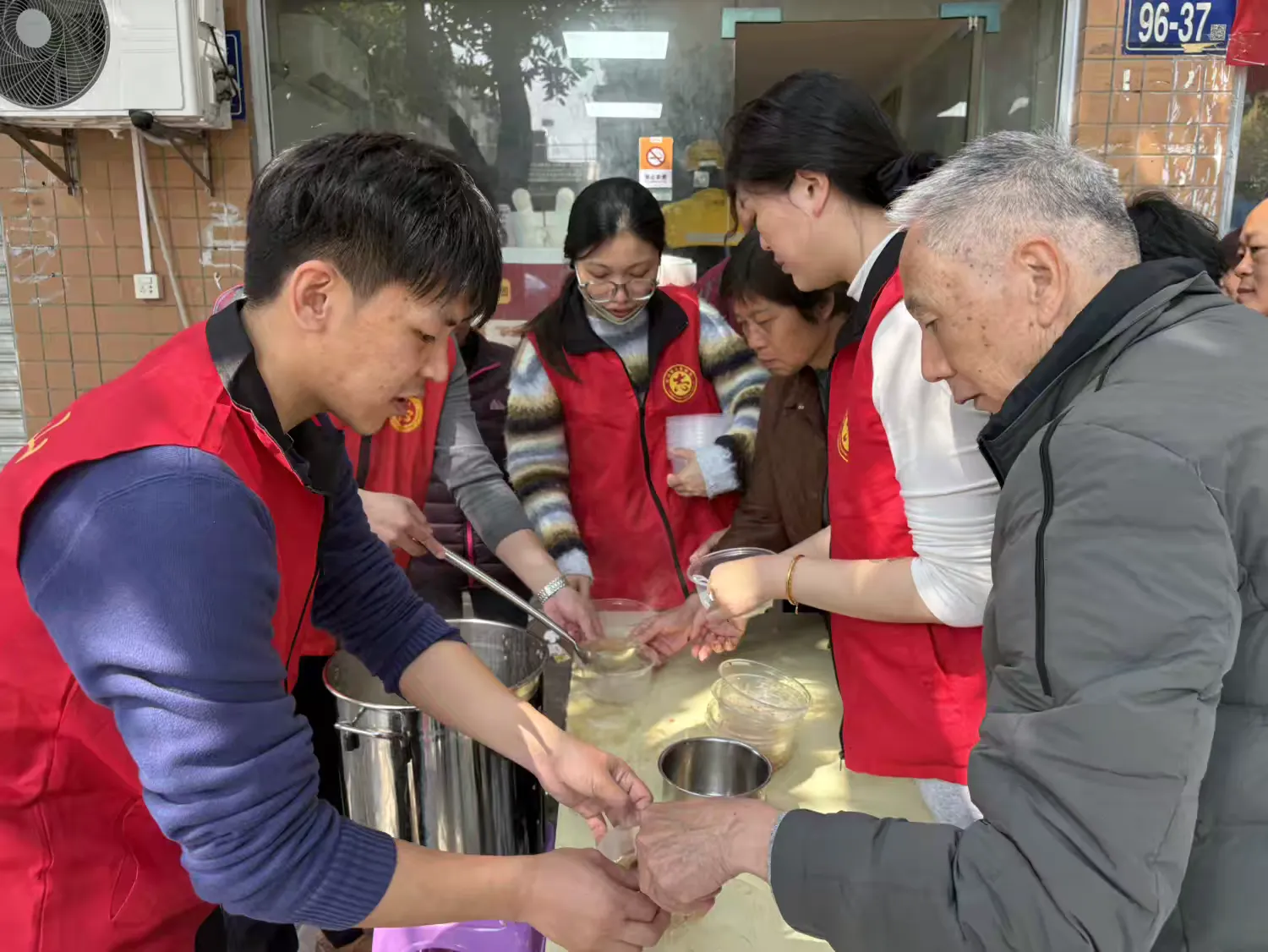一碗热粥暖身,一句祝福暖心。活动中,社区工作人员、志愿者与热心居民一起,将热气腾腾的拗九粥送到辖区高龄老人、独居老人、困难群众手中,详细询问老人身体状况和生活情况,叮嘱注意防寒保暖,送上节日慰问和美好祝愿。老人们接过香甜粥品,脸上露出欣慰笑容,连连称赞社区贴心周到、邻里和睦暖心。邻里之间互致祝福、闲话家常,欢声笑语不断,处处洋溢着尊老、敬老、爱老、助老的文明新风。