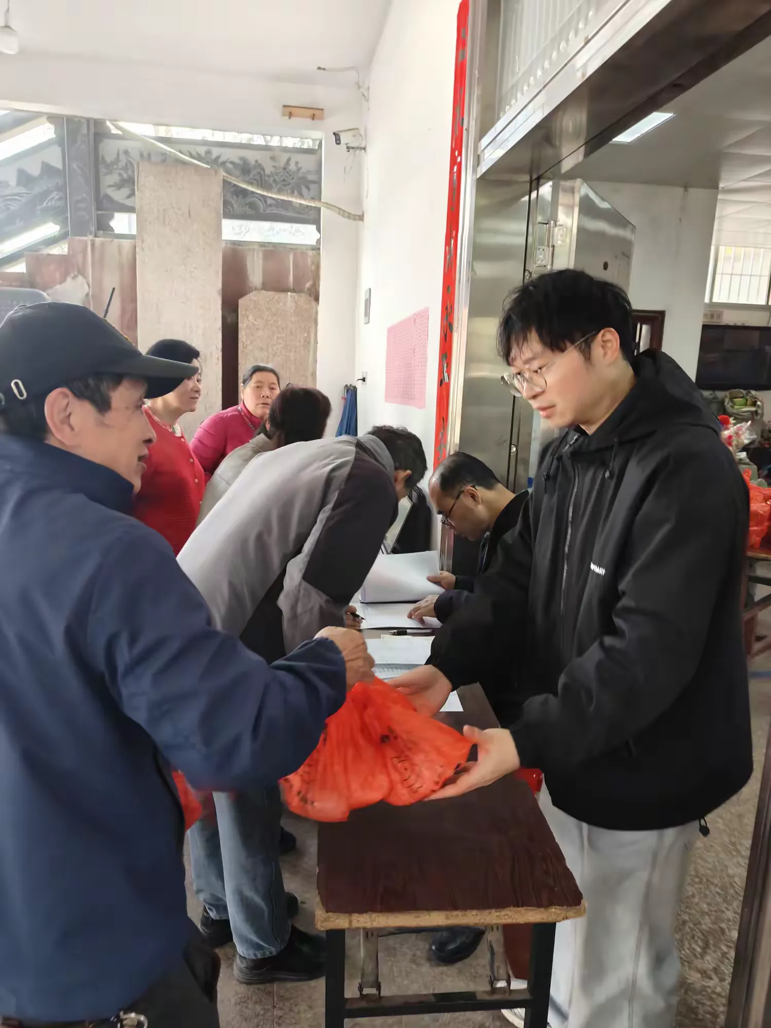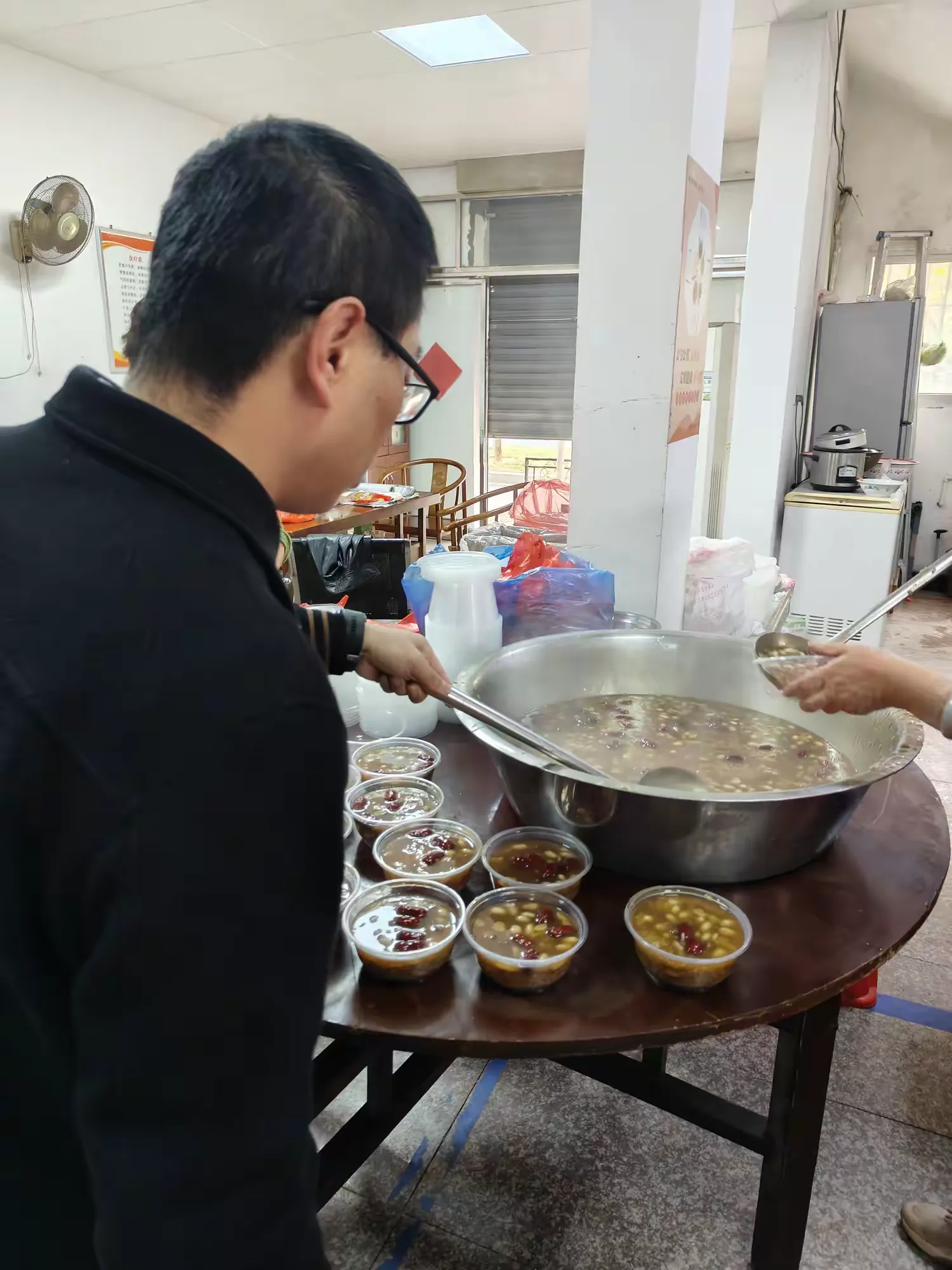 湖边村的志愿者们在现场熬粥、盛粥,把一份份“有福之粥”递到老人们的手中。一份份线面、蛋等慰问品,不仅暖到心里,更蕴含着对长辈深深的敬爱与祝福。