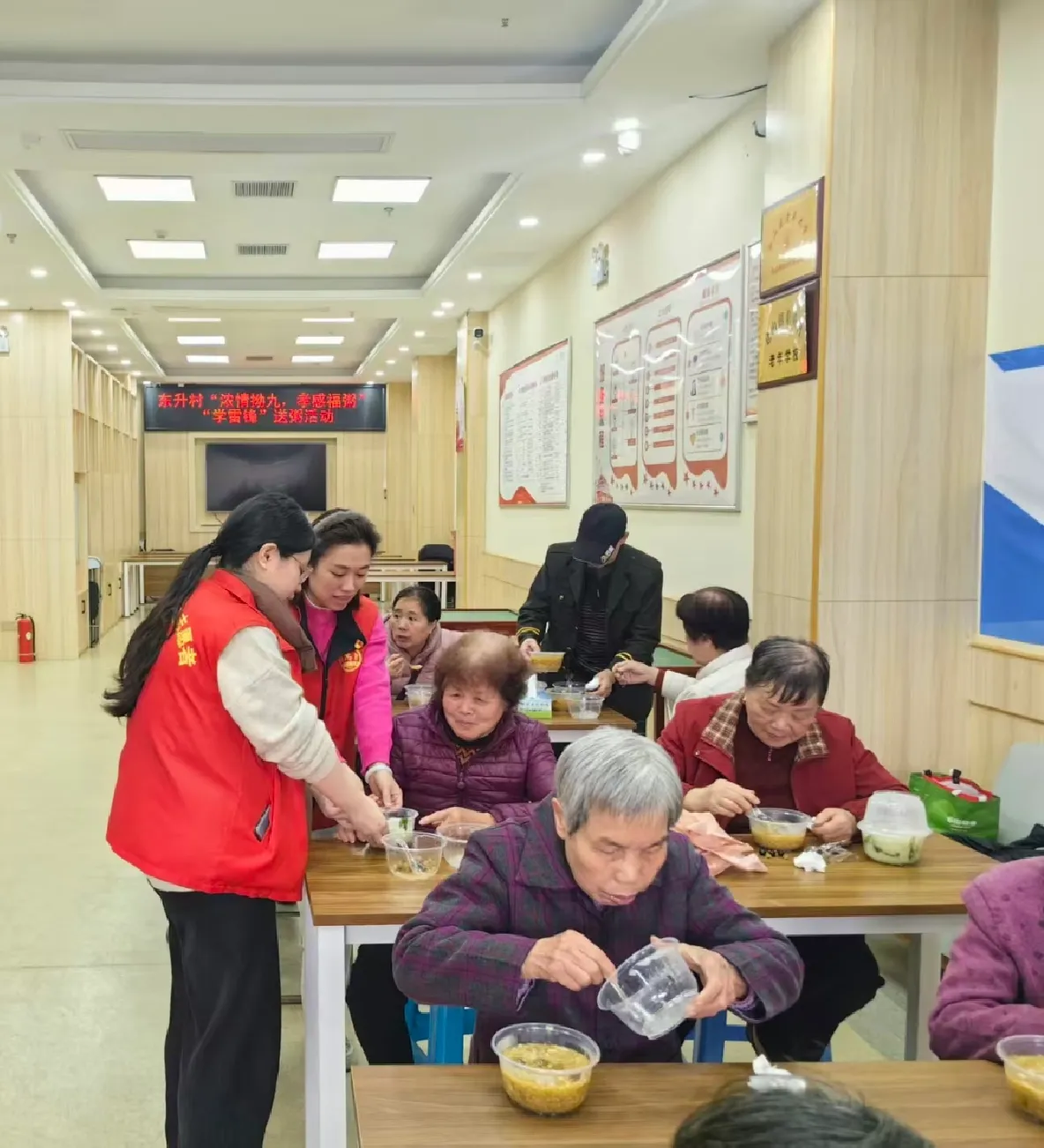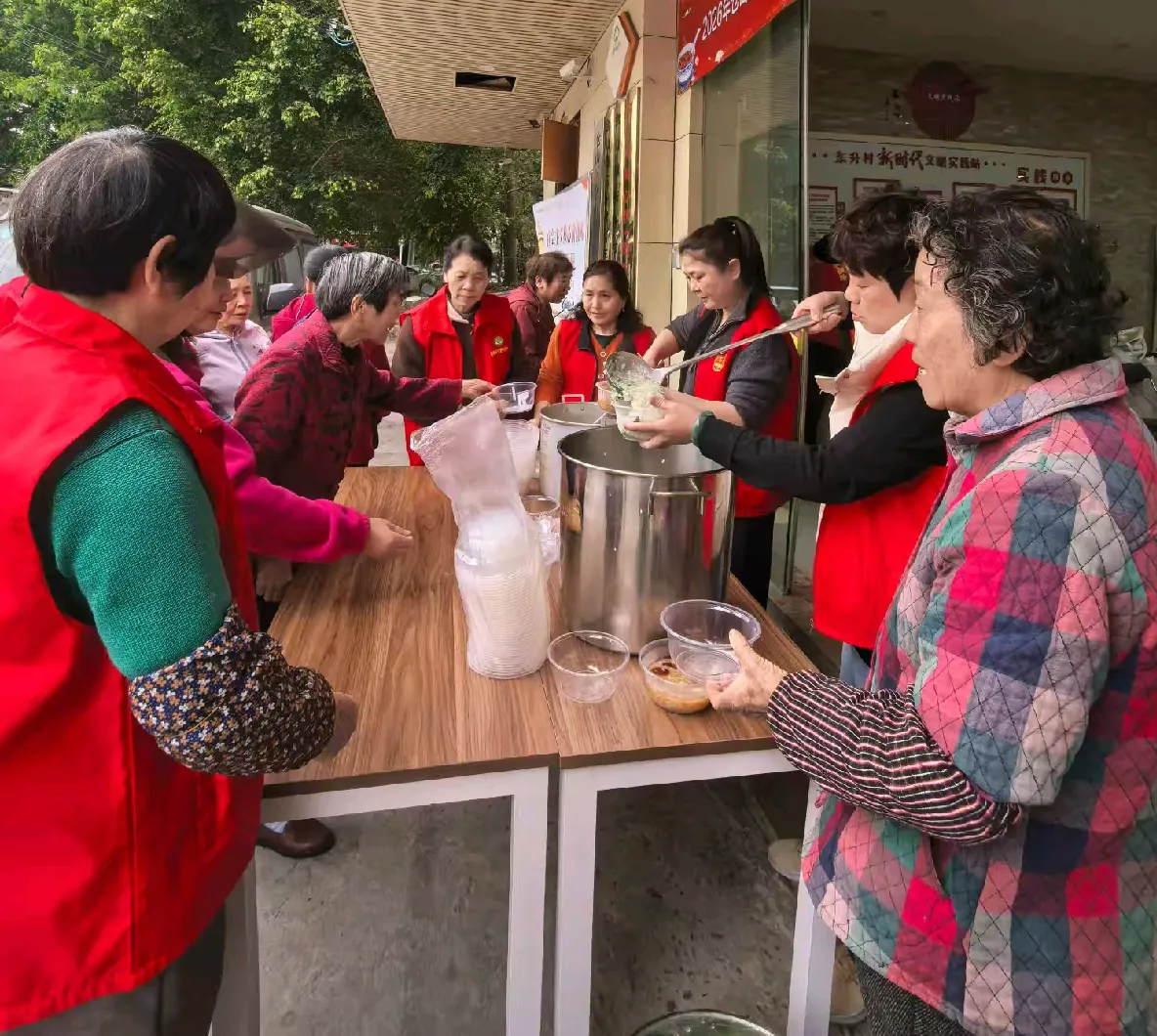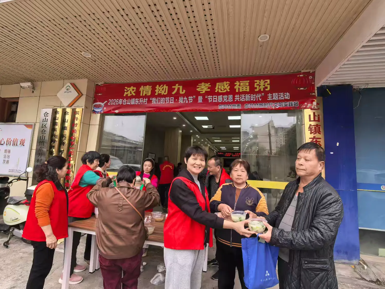 随着村民们的到来,活动迎来了最温馨的环节——“送福粥”。由村委会成员组成的志愿者们手捧拗九粥,恭敬地送到在场的长者手中,一句句“健康长寿”的祝福语,让老人们乐得合不拢嘴。对于行动不便的高龄老人,志愿者们还组成“爱心小分队”上门探访,将热粥与关怀送到床前。