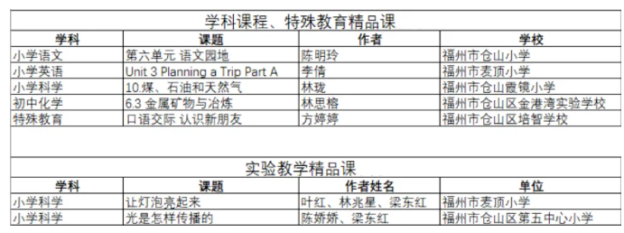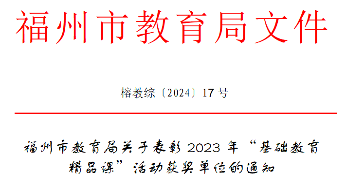 近日,福州市教育局发布《关于表彰2023年“基础教育精品课”活动获奖单位的通知》。根据《教育部办公厅关于公布2023年教育部“基础教育精品课”名单的公告》,福州市小学(含省市属校)获评学科课程“部级精品课”14节,其中仓山区小学3节;福州市特教学校获评特殊教育“部级精品课”4节,其中仓山区1节;福州市小学(含省市属校)获评实验教学“部级精品课”(含数学、科学、信息科技学科)6节,其中仓山区小学科学2节。
