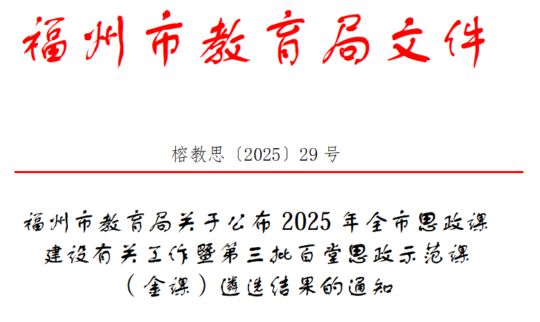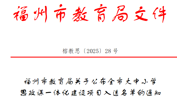 近日,福州市教育局公布2025年全市思政课建设有关工作暨第三批百堂思政示范课(金课)遴选结果。其中,仓山3项活动入选2025年全市思政课教师“大练兵”交流展示活动,同时列入第三批百堂思政示范课。此外,在全市大中小学思政课一体化建设项目活动中,仓山2所学校入选福州市大中小学思政课一体化建设实验学校。