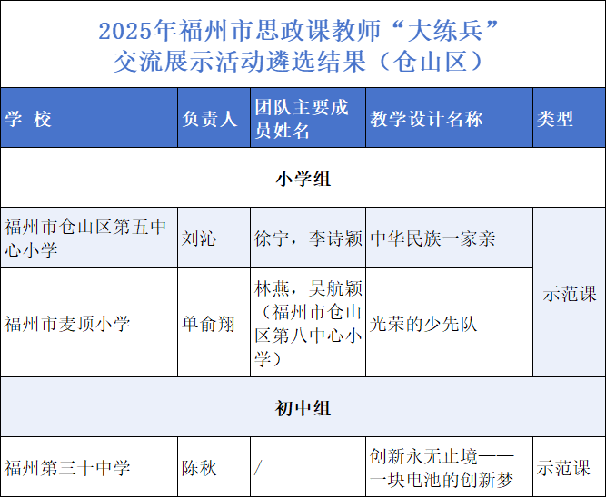 2025年福州市思政课教师“大练兵”交流展示活动遴选结果(仓山区))(第三批百堂思政示范课)