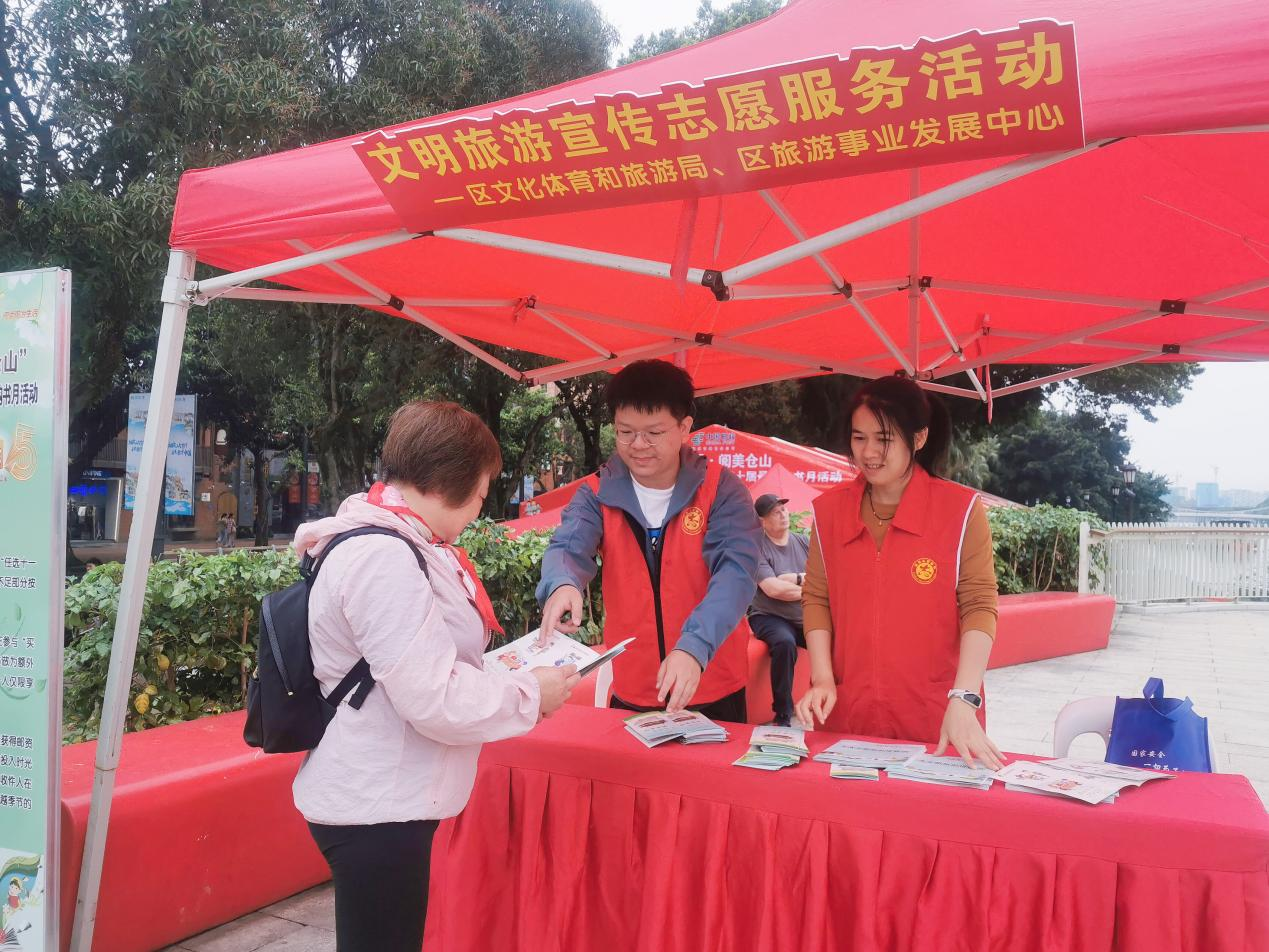 书香榕城”福州市全民阅读系列活动仓山分会场活动,并开展文明旅游宣传,通过发放资料、现场讲解等方式,向市民游客普及文明旅游知识,倡导大家践行文明旅游理念,共同营造文明和谐的旅游环境。