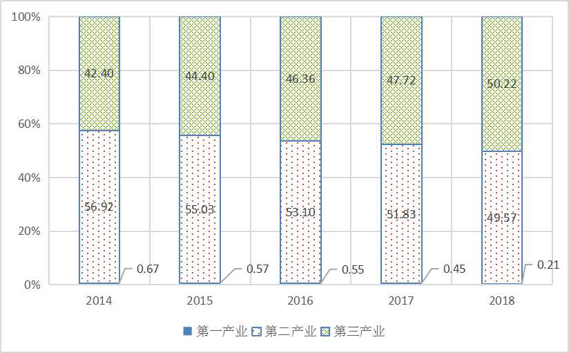 图1 2014-2018年三次产业增加值占GDP比重