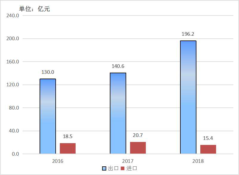 图5 2016-2018年进出口总额