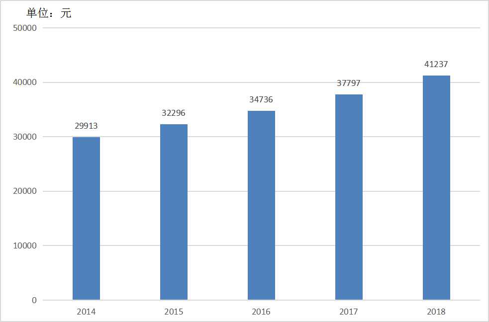 图6 2014-2018年城镇人均可支配收入