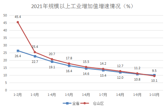 1-10月全区规上工业增加值比增9.5%,较上月下降1.7个百分点,与全市增速持平,低于全省0.6个百分点,连续5个月排名全市第三。1-10月全区规上工业总产值达到943.04亿元,比增15.8%,10月当月完成产值98.91亿元,比增7.4%。