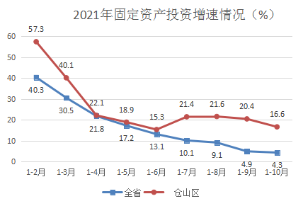 1-10月全区固定资产投资比增16.6%,较上月下降3.8个百分点,高于全市增速9.2个百分点,高于全省12.3个百分点,排名保持全市第四。