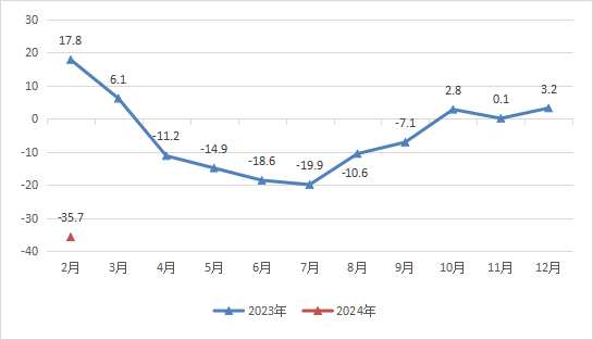 1-2月固定资产投资增速-35.7%。