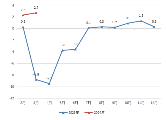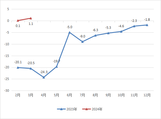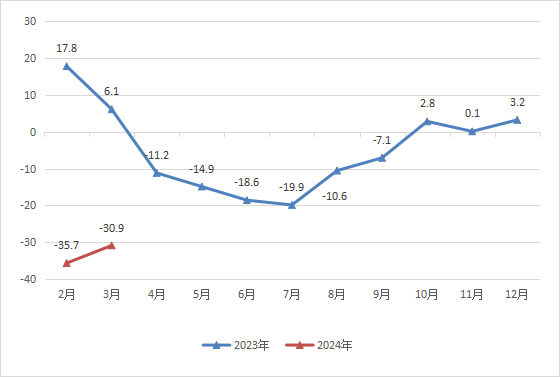 1-3月固定资产投资增速-30.9%。