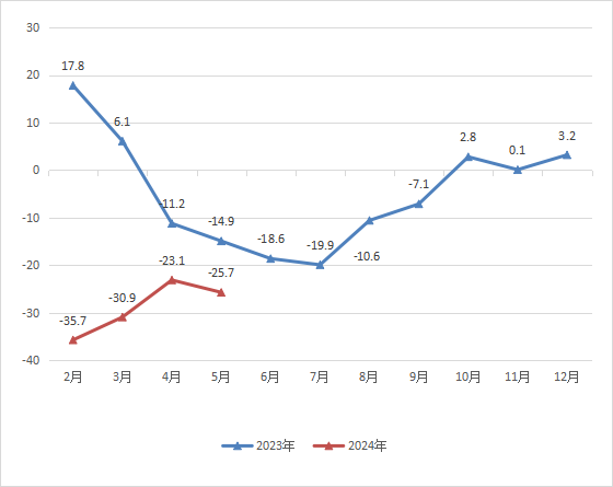 1-5月固定资产投资增速-25.7%。