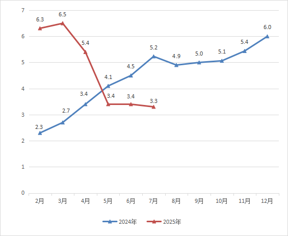 1-7月社会消费品零售总额501.06亿元,增速3.3%。