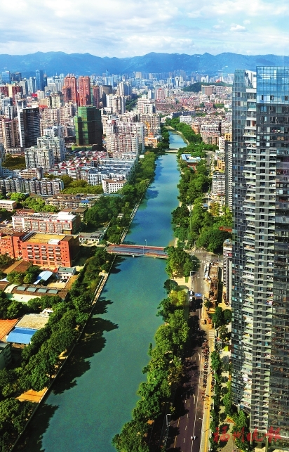曾让人们掩鼻而行的内河,如脱胎换骨般脱下黑臭的外衣,着上一身秀色。顺着内河蜿蜒呈现于市民眼前的,是带着休闲步道、青翠草木的福州新景观带。