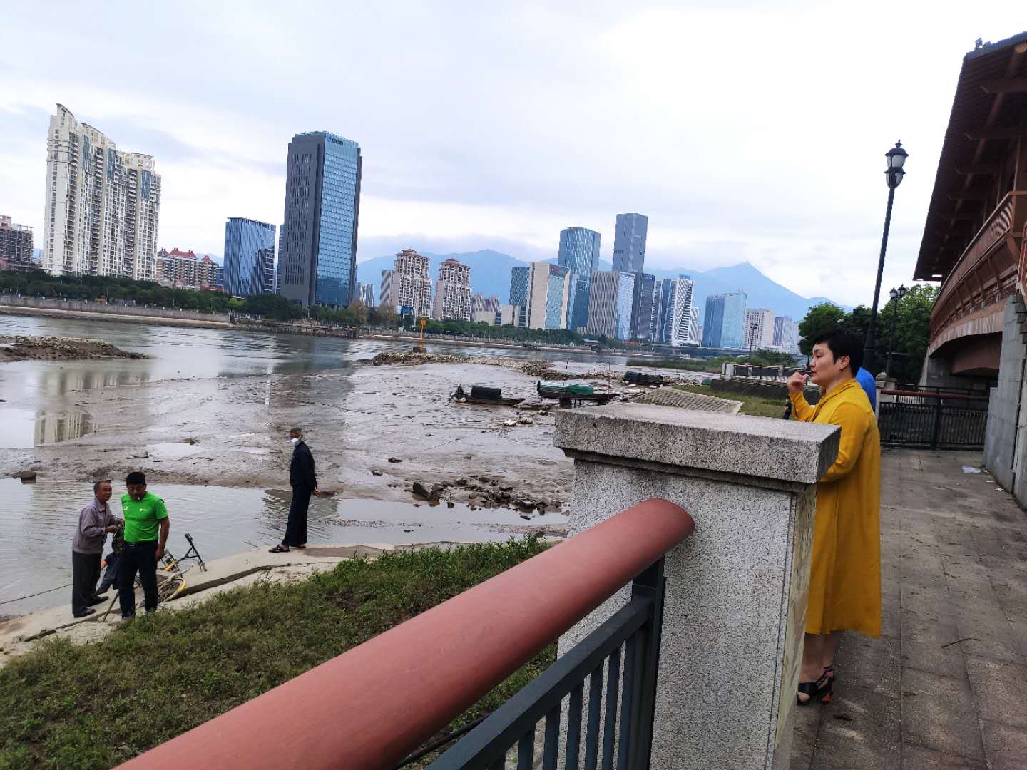街道主要领导察看闽江河岸水质环境