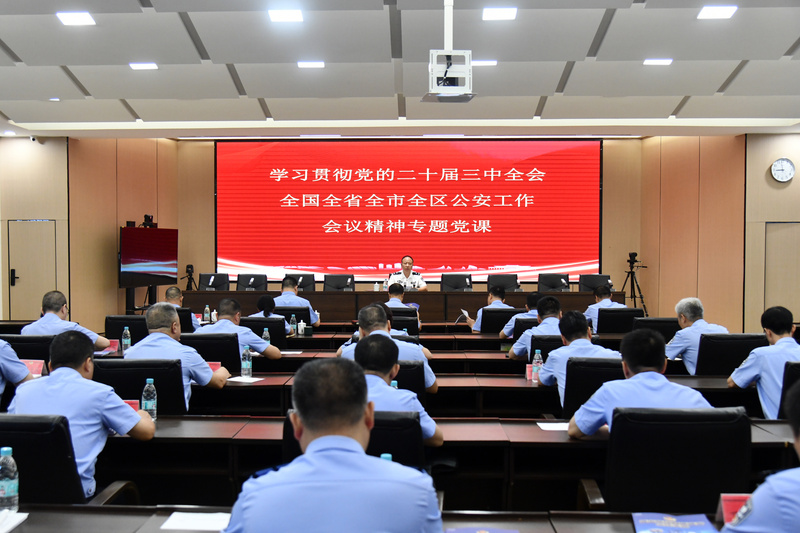 郑金保局长传达学习了党的二十届三中全会精神、习近平总书记关于新时代公安工作的重要论述和全国、全省、全市、全区公安工作会议精神,要求全警怀着特殊感情、带着特殊责任,按照党的二十届三中全会精神和全国、全省、全市、全区公安工作会议部署要求,牢牢把握推进公安工作现代化这条主题主线,以深化拓展“三争三领”行动为抓手,紧扣市局党委“五个第一”和“五个一以贯之”工作原则,踔厉奋发、苦干实干,全力以赴做好防风险、保安全、护稳定、促发展工作,切实把习近平总书记的殷切嘱托转化为做好新时代公安工作的强大动力,努力为我区加快建设现代化国际城市先行示范区创造安全稳定的政治社会环境。