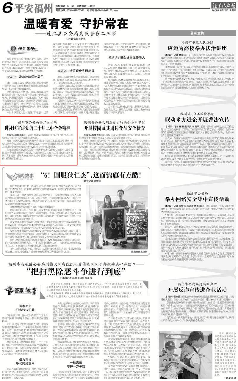 近日,福州市公安局临江派出所联合下池社区开展党的二十届三中全会精神宣讲活动。