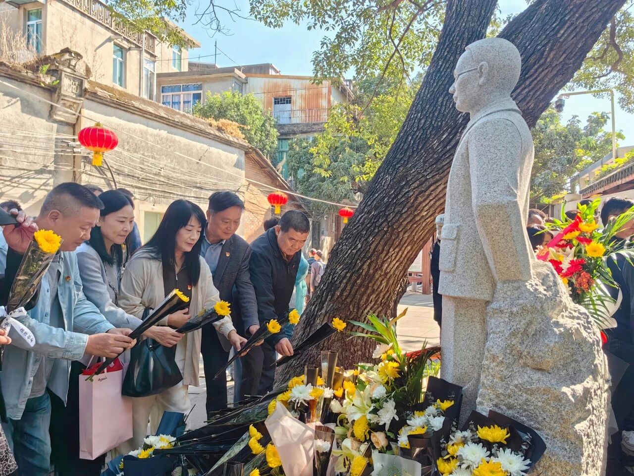 在吴石将军塑像前,党员们深切缅怀吴石将军对国家和革命事业的无限热爱和赤诚信仰,并满怀深情向吴石将军献花。
