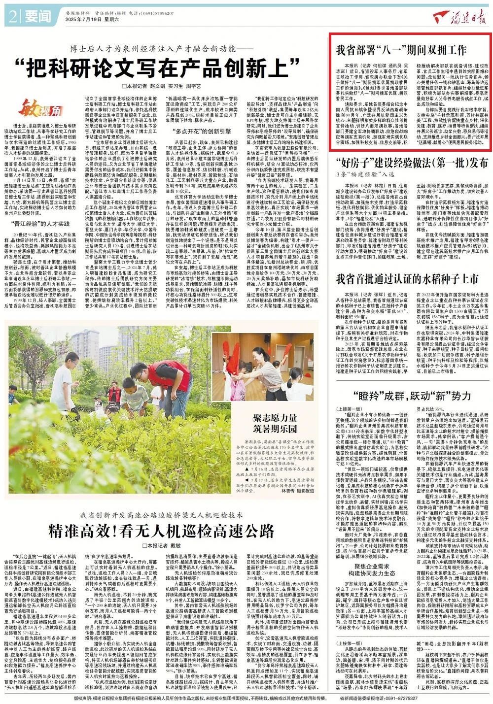 《通知》要求各地各部队要扎实做好“八一”期间拥军优属、拥政爱民工作。通知要求,军地各级要结合纪念中国人民抗日战争暨世界反法西斯战争胜利80周年,广泛开展以爱国主义为核心、主题鲜明形式多样的群众性双拥宣传活动,讲好八闽双拥故事。各地各部门要健全军地协调联动、应急应战响应等拥军支前机制,加强军地实战化联合演练,加强科技支前、信息支前等,积极推动解决部队在战备训练、建设改革、官兵工作生活中遇到的实际困难和问题。走访慰问一线执行任务官兵,倾心关爱任务一线和驻高山、海岛等边远艰苦地区部队官兵;组织社会力量进军营,积极为部队办实事解难事。要高质量做好军人父母养老服务试点工作,试出成效和经验。